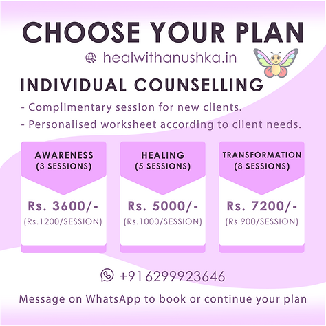 Congratulations on taking your first step towards your mental health journey. We have daily slots available just for you.The first session is on us when you book the second one.
